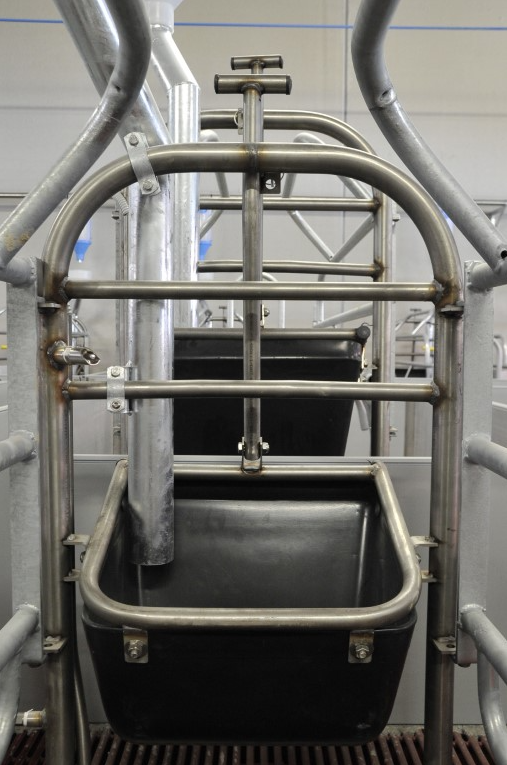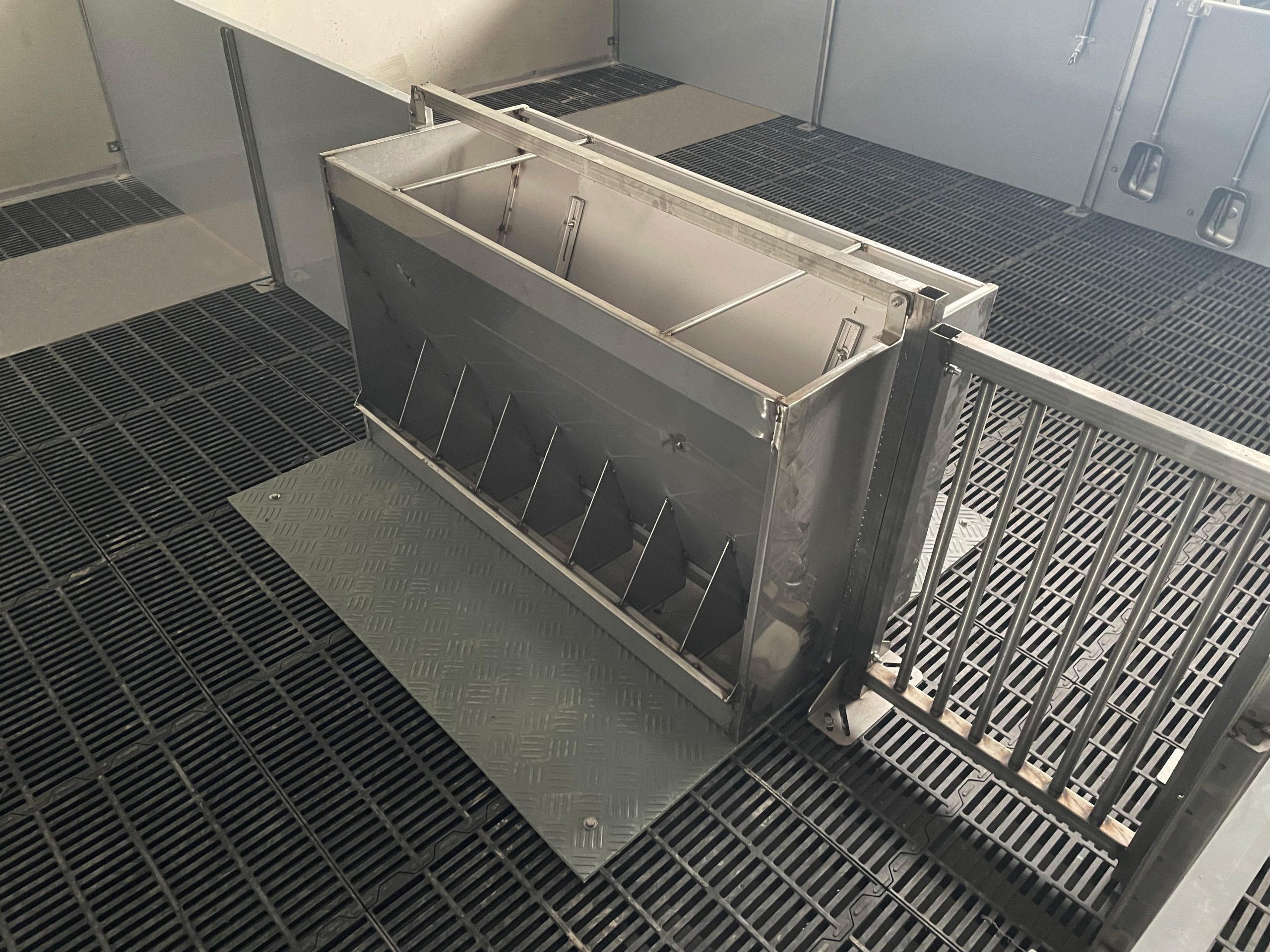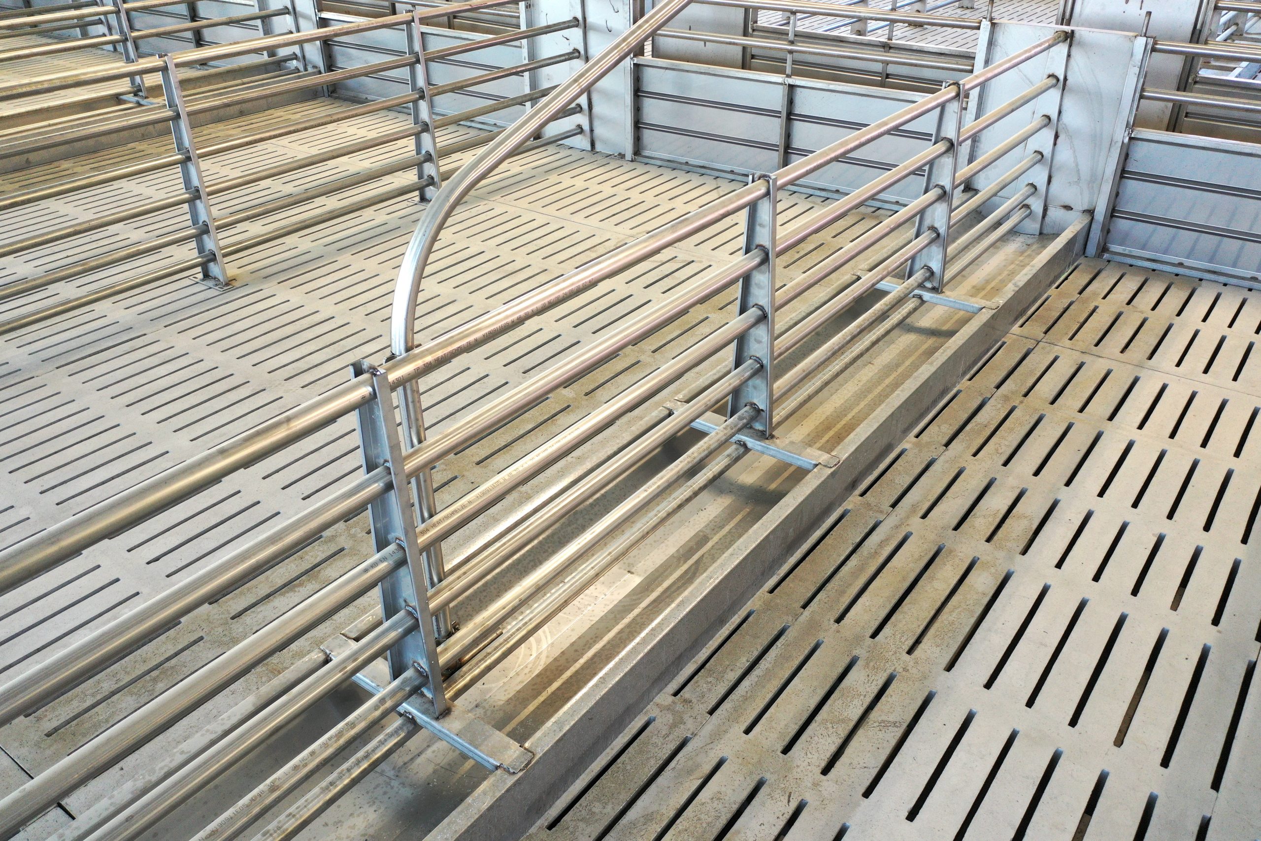 Le calate sono interamente in acciaio inox, disponibili in configurazione singola o doppia, e possono essere dotate di abbeveratoi con o senza vaschetta, selezionati in base alla fase produttiva e al numero di animali.