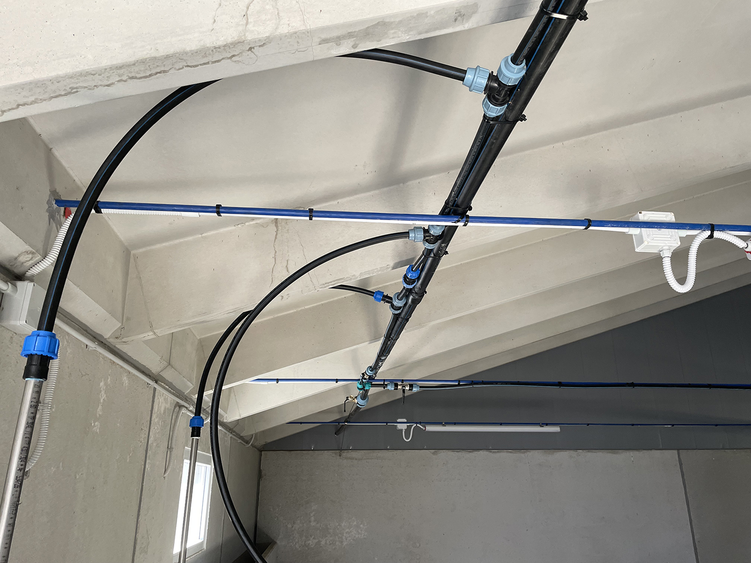Il funzionamento del sistema è completamente automatizzato e integrato nella centralina di gestione del microclima, la quale regola in tempo reale l’attivazione e l’intensità del Pad-Cooling in base ai parametri ambientali desiderati (temperatura, umidità, età e peso degli animali, ecc.).
